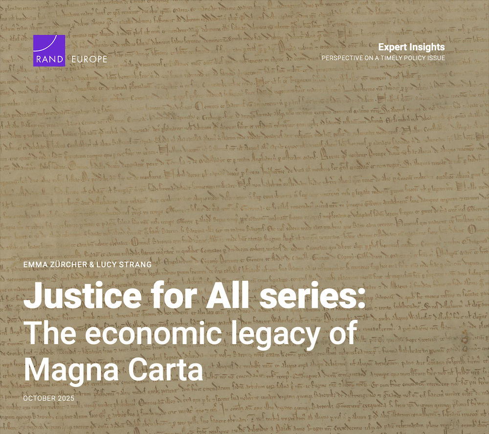As the research partner for the Justice for All Series, RAND Europe has produced the first paper accompanying the programme. The study explores how the principles established at Runnymede over 800 years ago continue to shape modern governance, law, and economic growth.
